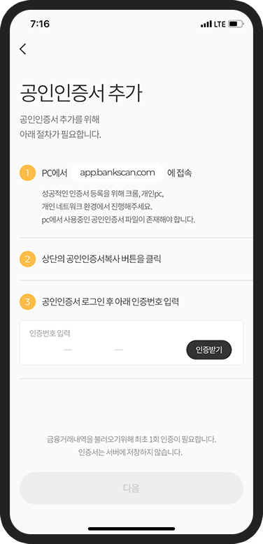 앱에 표시된 인증번호를 입력하여 인증을 받으세요.